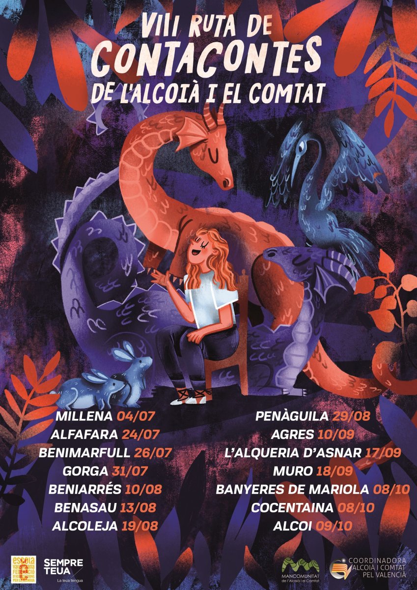 - Durant tot l'estiu: VIII Ruta de contacontes de l'Alcoià i el Comtat. 14 espectacles de narració oral, als pobles de les nostres comarques. Consulteu el cartell.
